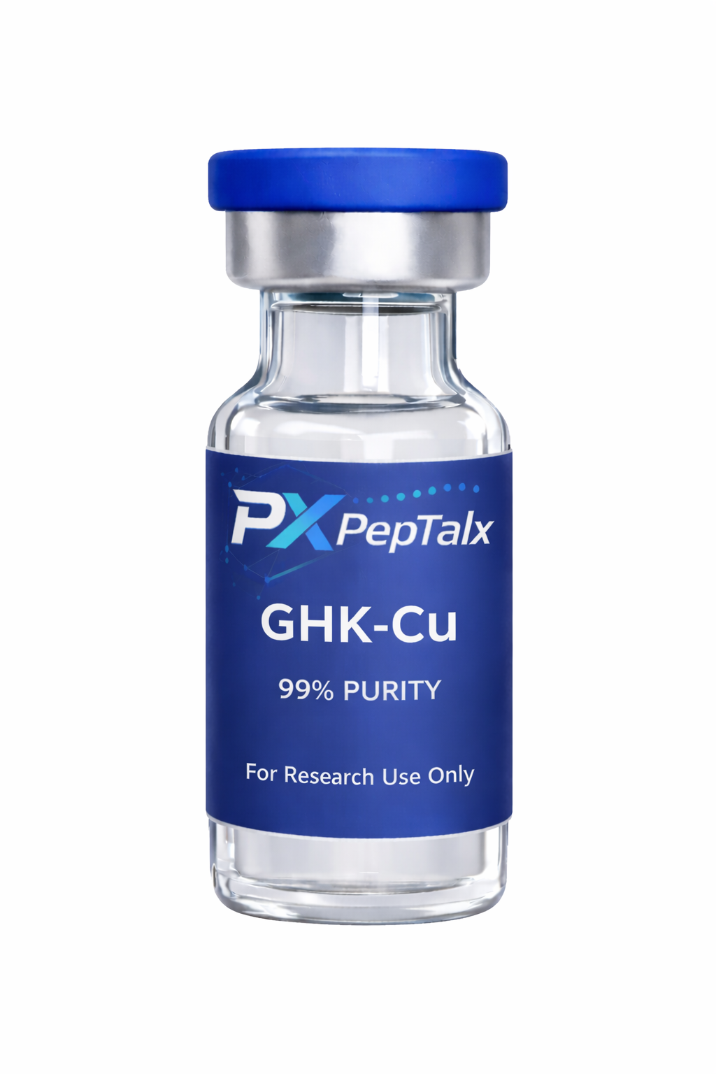 GHK-Cu is a naturally occurring copper-binding peptide complex (glycyl-L-histidyl-L-lysine) that has been widely studied for its role in cellular signaling, tissue remodeling, and regenerative processes.