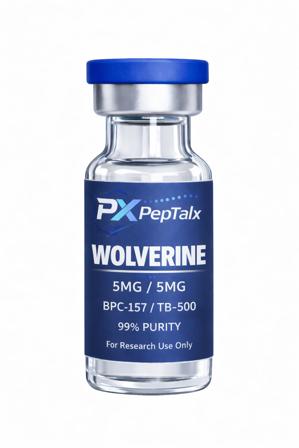 Wolverine Blend (BPC-157 / TB-500) is a synthetic research peptide combination composed of BPC-157 and TB-500, two peptides commonly studied for their potential roles in tissue repair and regenerative signaling pathways.